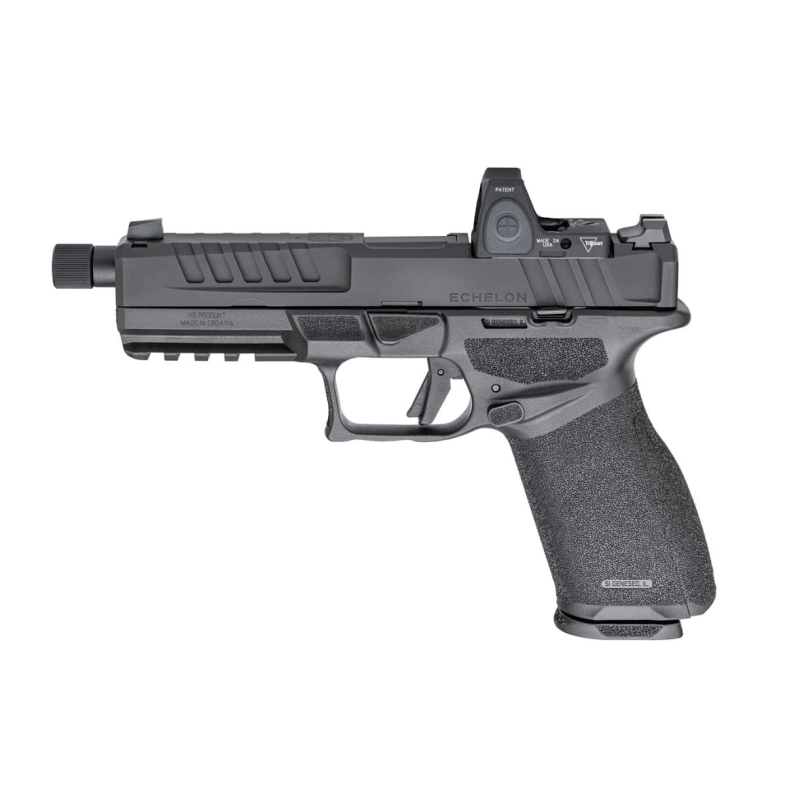 Pistolet Echelon to efekt współpracy amerykańskich i chorwackich konstruktorów. Innowacyjne rozwiązania, takie jak zdublowany zrzut magazynka i zamka, oraz ergonomiczny design zapewniają niezawodność i bezpieczeństwo. System COG umożliwia łatwą zmianę chwytu bez ingerencji w mechanizmy. Wykonany z wysokiej jakości stali, zapewniając ochronę i płynne działanie. Unikalne funkcje, jak drugi zaczep kurka, zabezpieczają przed niezamierzonym wystrzałem. Dostępne różne moduły uchwytów i tekstura Adaptive Grip zapewniają idealne dopasowanie i kontrolę. System montażu umożliwia mocowanie różnych kolimatorów bez dodatkowych adapterów. Echelon to kompaktowy, wszechstronny pistolet o imponujących parametrach technicznych i wysokim standardzie wykonania.