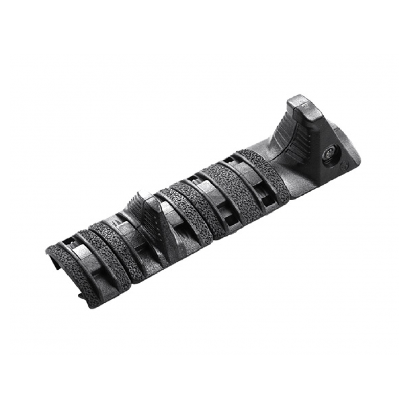 Zestaw minimalistycznego chwytu przedniego ograniczającego ruch dłoni na chwycie przednim wyprodukowany przez Magpul.